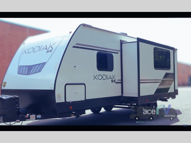 With any Kodiak SE travel trailer by Dutchmen RV, you can experience comfort while camping at a moment's notice. Each trailer includes features such as power front and rear stabilizer jacks, a power tongue jack making set-up easy, and a power awning with LED light. Each model is pet-friendly with the carpet-free slide out floor, tile flooring, and the pet leash D-ring. You can enjoy the wireless Bluetooth speaker, the LED interior and exterior lighting, and the 80" interior height. From the floor structure which includes a fully enclosed underbelly to the laminated walls with aluminum frame and block foam insulation, any Kodiak SE is built lightweight and ready for adventure!
