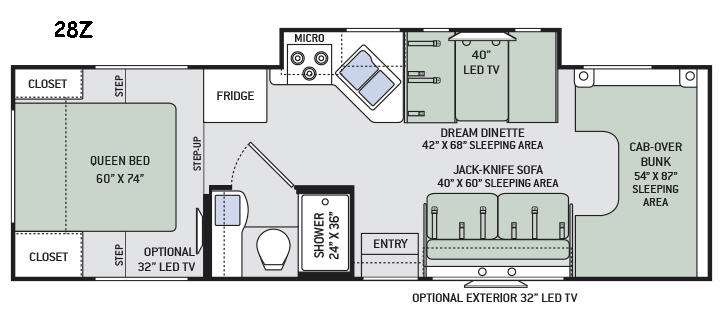 Enjoy each adventure in this Thor Motor Coach class C home on wheels. This Four Winds model 28Z offers added comfort including a large slide out, and rear bedroom featuring a queen size bed.